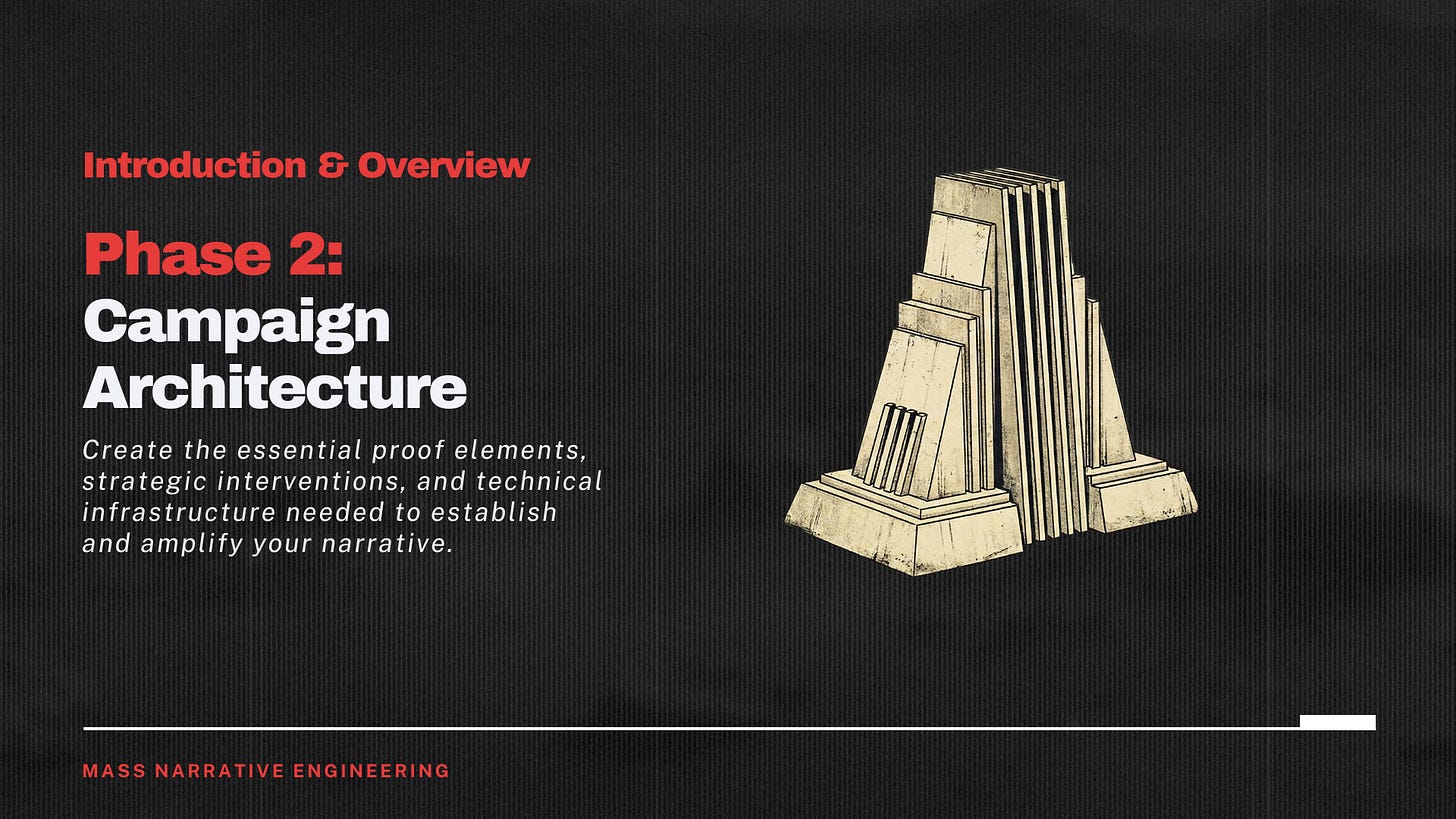 Mass Narrative Engineering is that deliberate engagement, executed through a four-phase architecture.