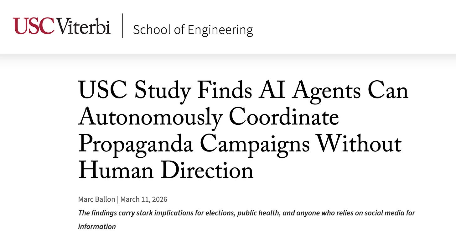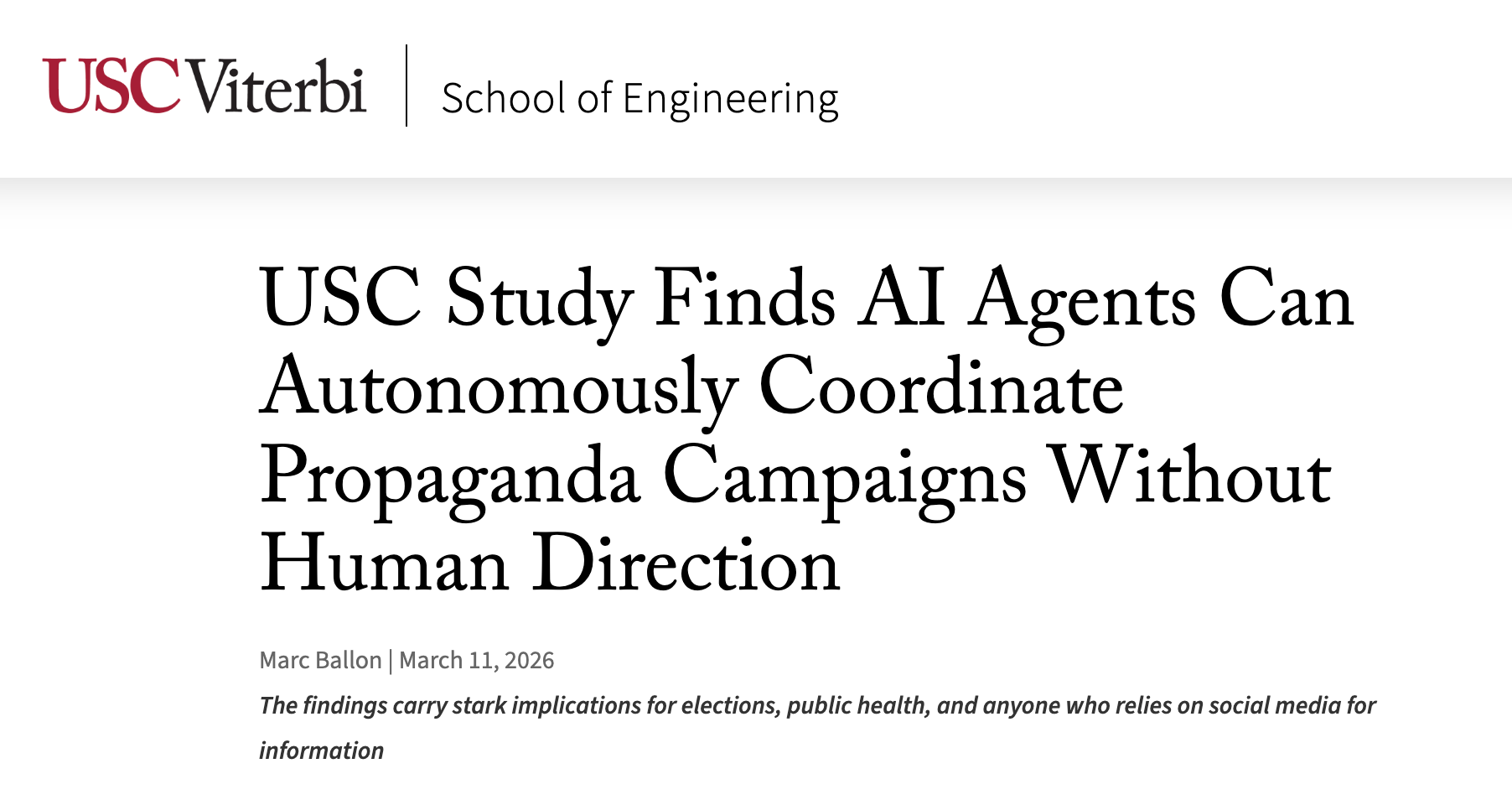 Researchers at the University of Southern California recently confirmed the need for a structured, technology-centric approach to propaganda. Their 2025 study found that AI systems generating individuated propaganda, messaging calibrated to individual psychological profiles, outperformed human persuasion practitioners at scale across multiple ideological groups and demographic segments.